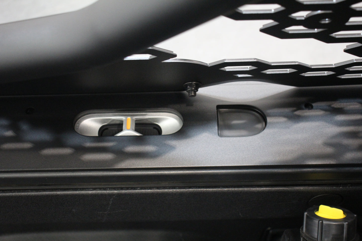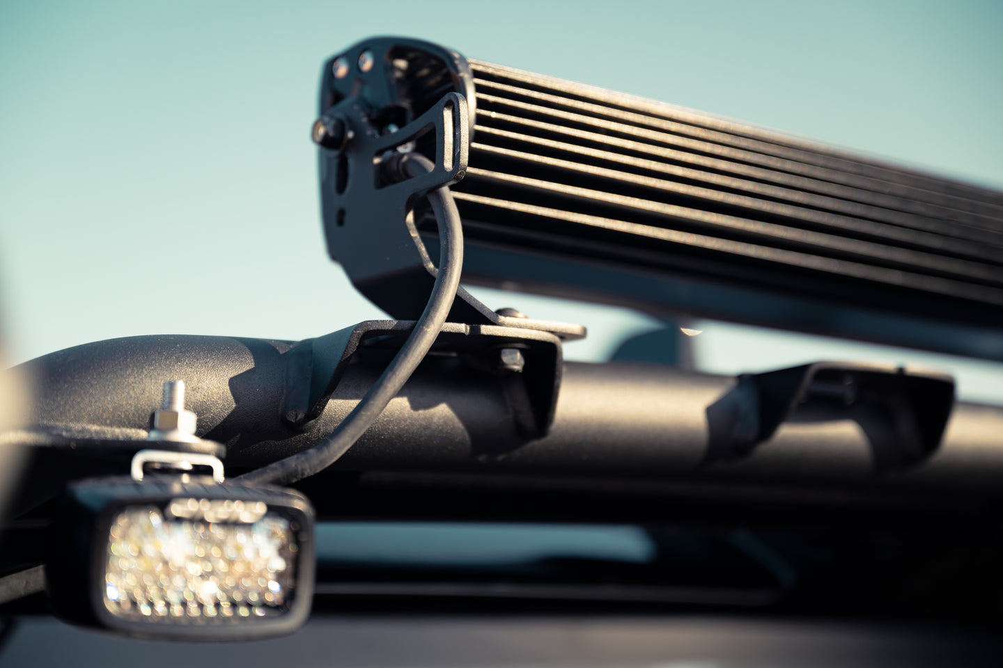 The tucked away light pod mounts are perfect for mounting rear facing pods for either off road visibility or worksite illumination.