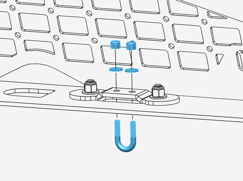 The provided U-Bolts are easily hooked through the factory mounting points, and tightened to achieve a secure installation.