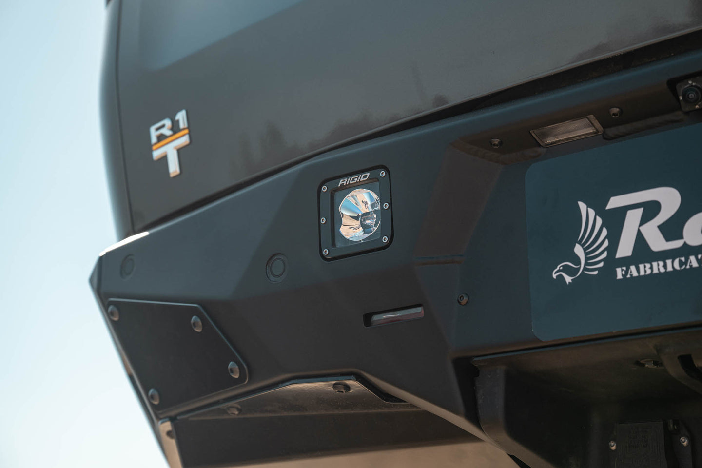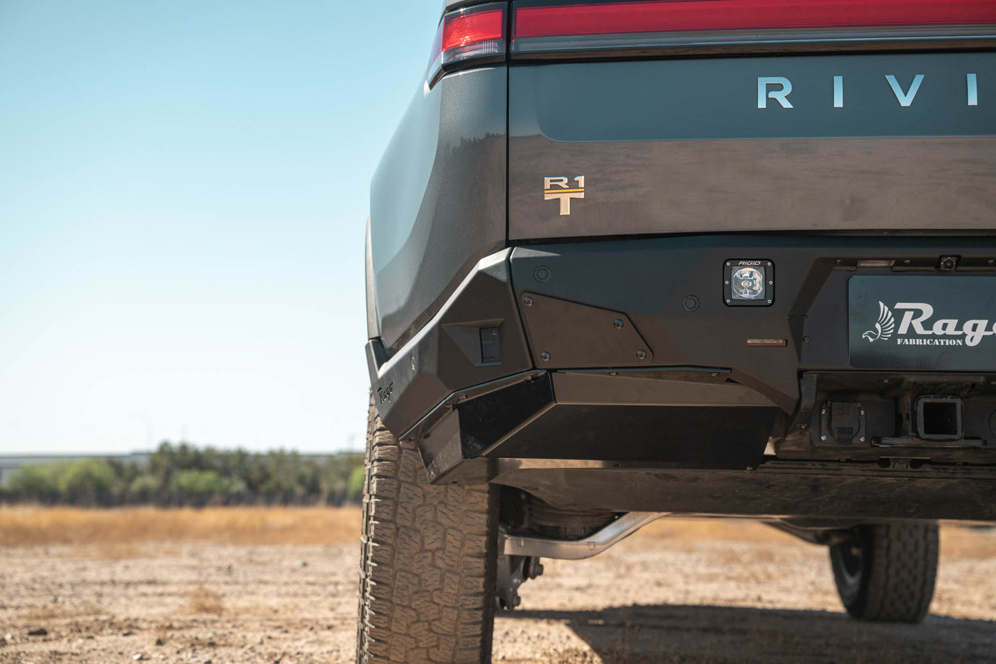 Complete your off-road build with a Rivian R1T Rear Bumper from Rago EV. Our bumper features two pod light mounts for illuminating obstacles behind your truck when in low-visibility conditions. It provides a low-profile design for improving your rear clearance when off-road. The bumper is designed to seamlessly wrap around the rear of your truck for a trim fitment that elevates your Rivian’s exterior styling. It is crafted from durable steel for added protection from rocks, shrubs, and debris encountered on and off the road. The bumper retains all of your R1T’s OEM drive assist sensors, so you don’t have to trade factory features for enhanced off-road utility. Included with the bumper are two heavy-duty 3/16-inch skid plates that shield your vulnerable rear undercarriage components from damage. Our rear bumper is finished in a resilient dual-stage hammer black powder coat with satin black accent panels for a sleek look that complements your Rivian’s exterior styling. All Rago EV products are proudly made in the USA.
